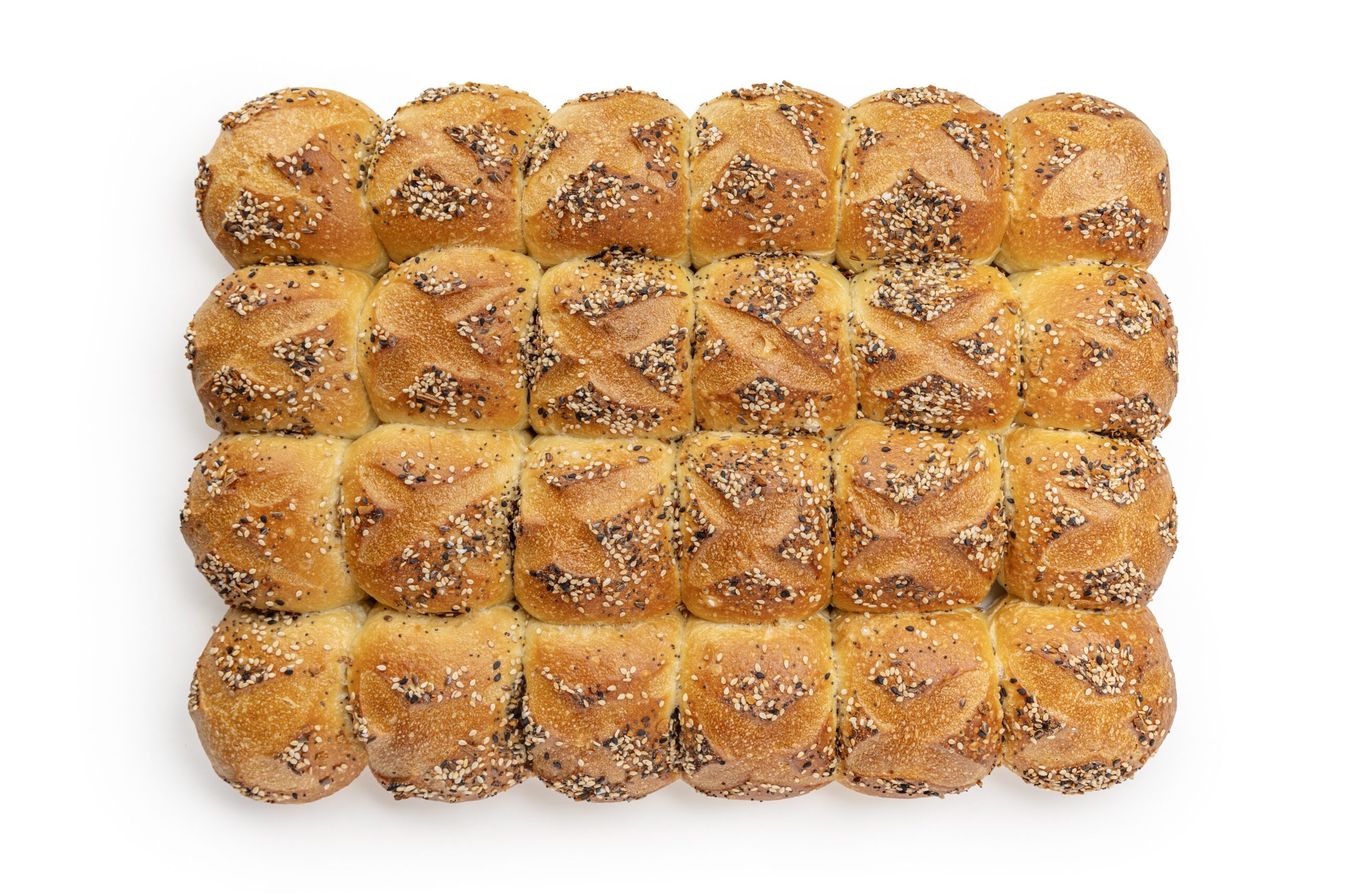 The Everything Parkerhouse Dinner Roll combines the beloved soft and buttery qualities of the classic Parkerhouse with the bold, savory flavors of an everything bagel. Topped with a blend of sesame seeds, poppy seeds, onion, garlic, and salt, these rolls deliver a flavorful twist that’s perfect alongside soups, salads, or as a flavorful mini sandwich base.