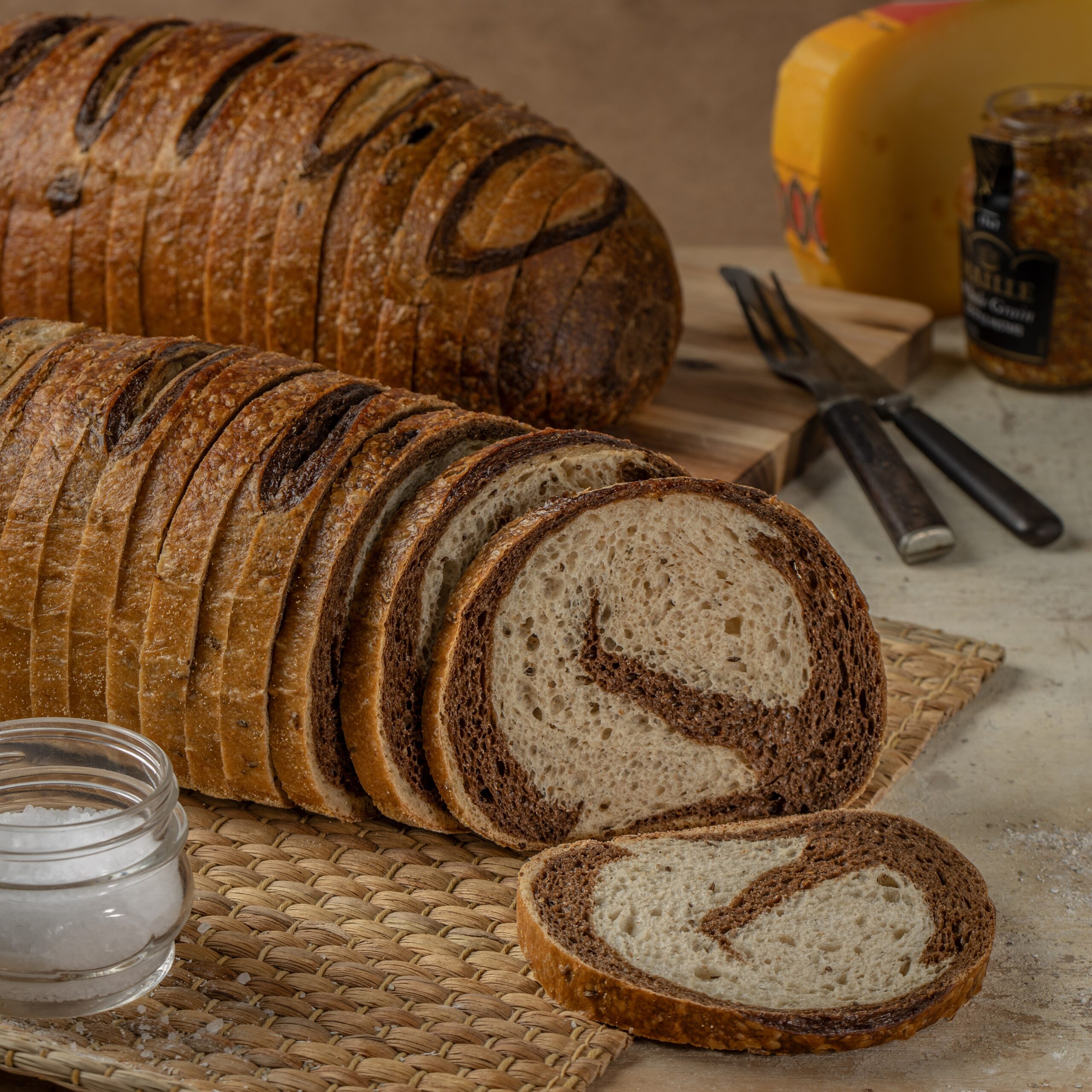 Hudson Bread’s wholesale frozen artisan Marble Rye Deli Freeform is a visually striking and flavorful bread that brings a unique twist to classic deli sandwiches. Its distinctive marbled pattern, created by combining dark and light rye dough, makes it a standout on any breadboard. The crust is thin and crisp. The contrasting flavors of light and dark rye provide a delightful complexity. This freeform loaf is the perfect choice for building hearty, stacked sandwiches that capture the essence of a traditional deli experience.